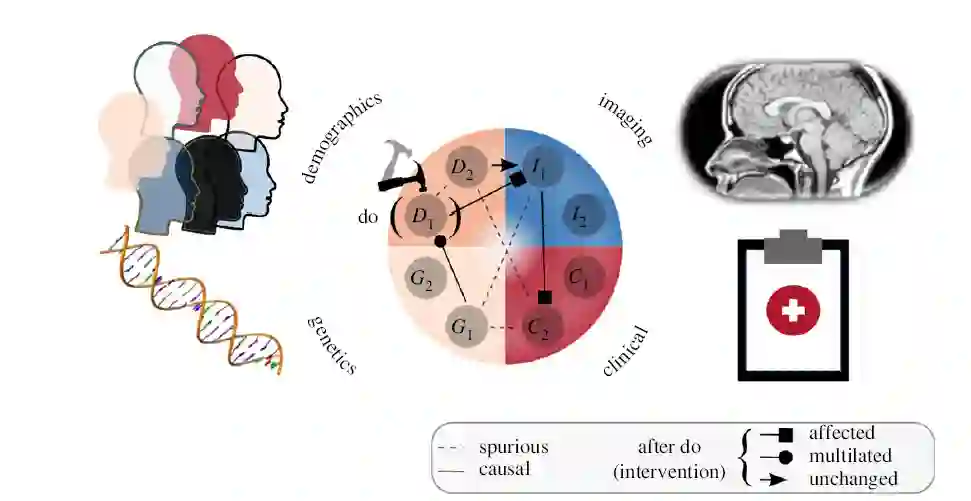 随着强大的机器学习(ML)方法(如深度学习[1])的出现,医疗健康预测系统取得了相当大的进展。在医疗保健领域,临床决策支持(CDS)工具可以对诸如医学图像、临床免费文本注释、血液测试和遗传数据等电子健康记录(EHR)数据进行检测、分类和/或分割等任务进行预测。这些系统通常使用监督学习技术进行训练。然而,大多数由ML技术支持的CDS系统只学习数据中变量之间的关联,而不区分因果关系和(虚假)相关性。