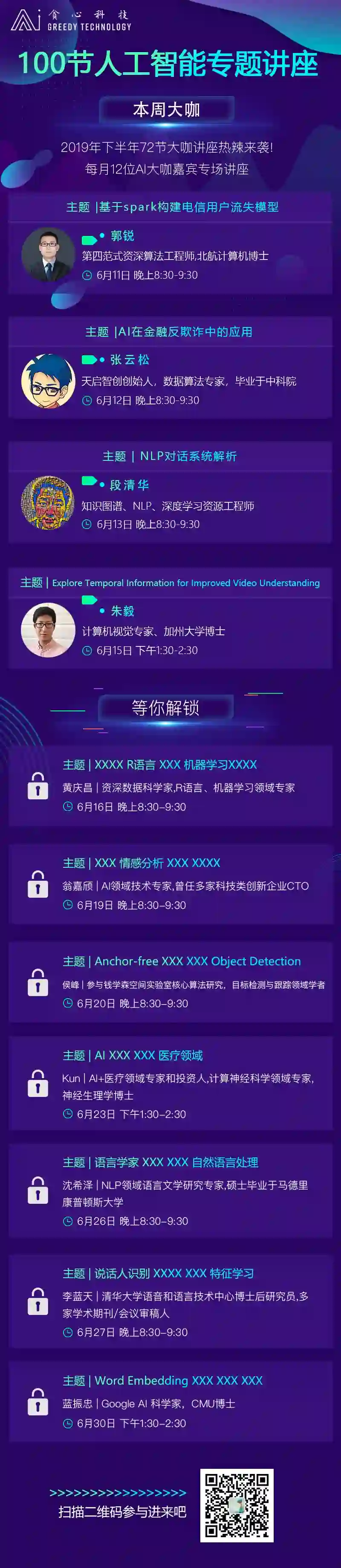 无论你是人工智能行业的工作者,还是正在学习AI的学生,或者你之后期待将人工智能相关技术应用到工作当中,这四场讲座都不容你错过!