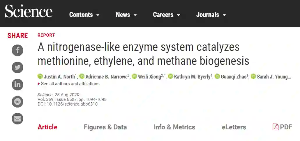 微生物中类似固氮酶的特殊蛋白质,与挥发性有机硫化合物利用有关(来源:Science)