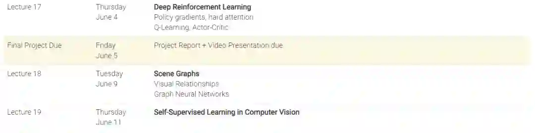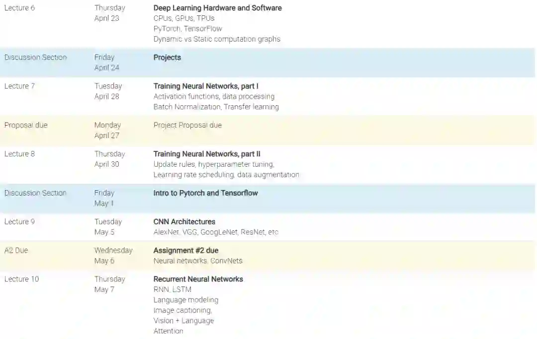 在本课程中,学生将学习如何实现、训练和调试自己的神经网络,并对计算机视觉的前沿研究有详细的了解。我们将涵盖学习算法,神经网络架构,和实际工程技巧的训练和微调网络的视觉识别任务。