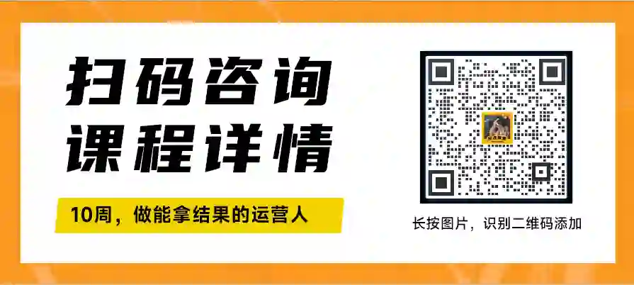 无论你是零基础想入门运营,还是在职人员想晋升,还是想拓宽能力边界......这门课程都非常适合你,如果你不清楚自己是否适合这门课程,欢迎扫码咨询运营顾问。