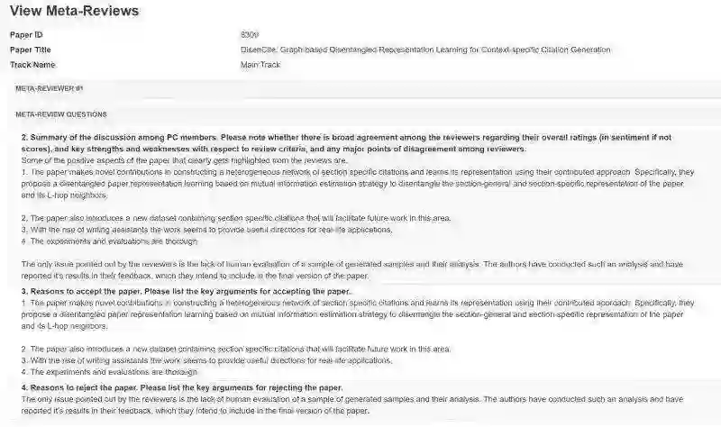 但reviewer也指出了这篇文章的一个问题,即实验部分没有从生成的引文结果中进行人类评估和分析。不过文章的作者在后续表示他们已经分析过了,并且将会在论文的最终版本中加入分析过程和结论。