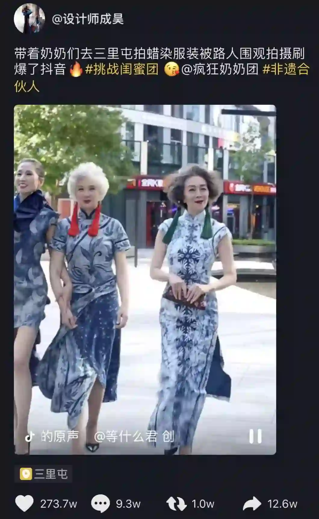 最近我发现在抖音上火了一群新网红:大妈。比如这个疯狂奶奶团,我有一天在热搜第一名上看到了。