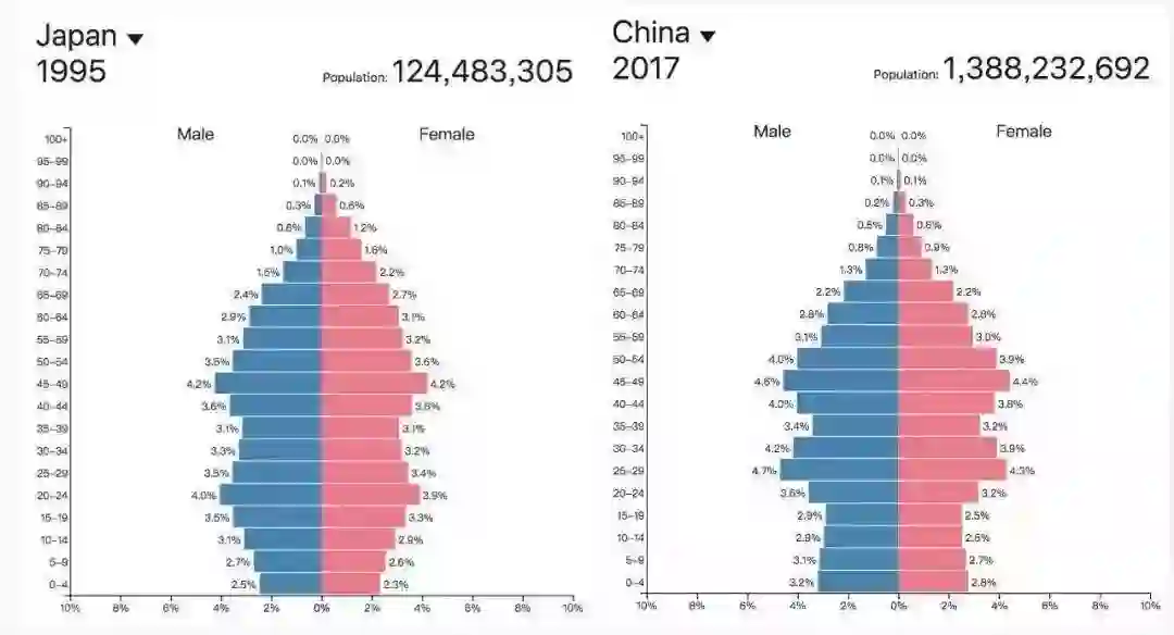 其实中国银发经济最好的参考者就是日本,2017年的中国人口结构同1995年的日本高度相似。