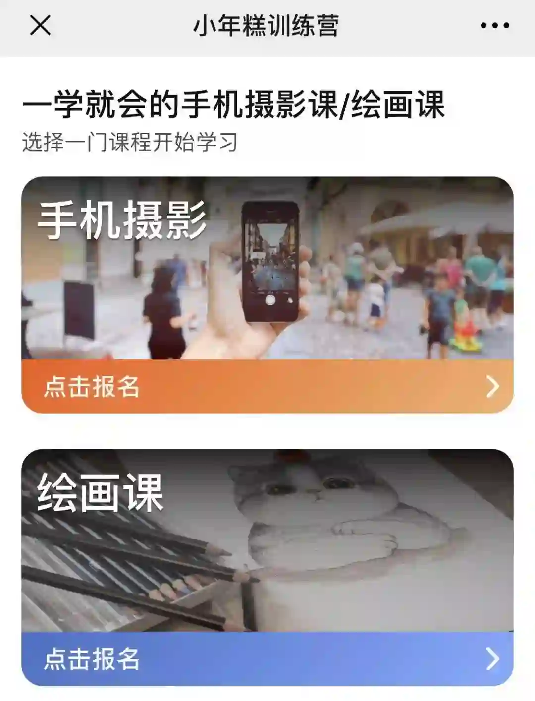 翻到小年糕的公众号,可以看到他们正在做“零基础教你学摄影”、“零基础学画画”等课程,绘画课是99元。