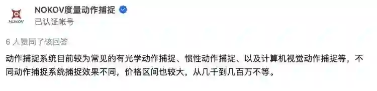 3D直播加实时动作捕捉的成本确实高昂。国内动作捕捉设备提供商NOKOV表示:“不同动作捕捉系统捕捉效果不同,价格区间也较大,从几千到几百万不等。”虚拟人技术提供商随趣在其官网显示,一些电影使用的高端动作捕捉全套系统甚至能达到上亿元。