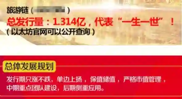 宣传只涨不跌,单边上涨,以太坊官网可查询等(旅游链是温商链的子项目):