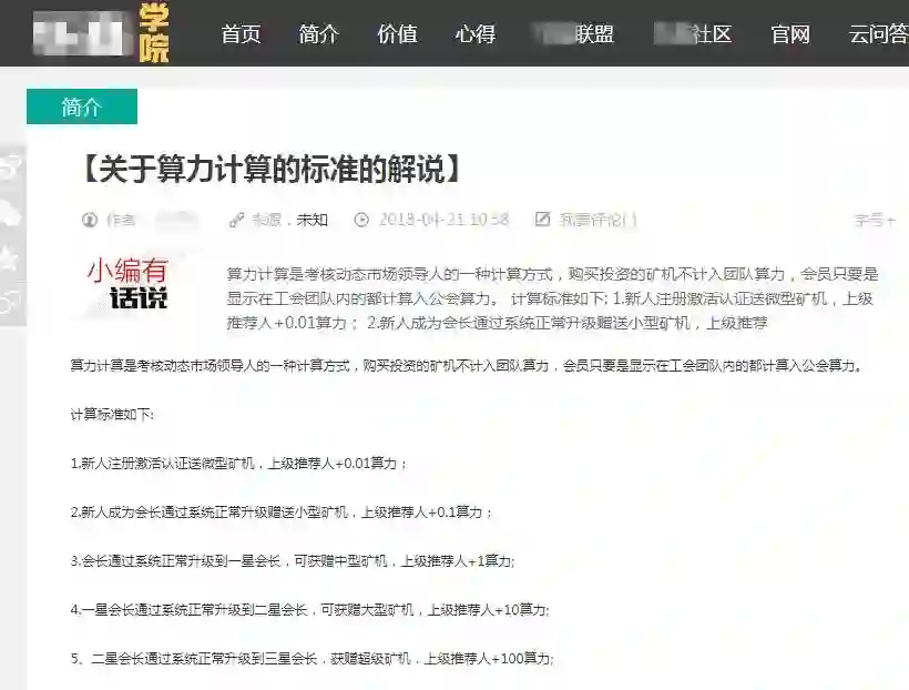 既然是传销币,拉人头这种传销最主要的套路肯定是少不了,与传统传销一样,这些传销币都有自己的会员等级系统,通过发展下线可以提升自己的等级,以获取虚拟币奖励、矿机奖励、矿机算力提高、持币生息利率等各类奖励,下线又会去发展自己的下线,是典型的传销。还有些项目仅仅是对象换成了虚拟币,内容还是些老的套路,比如投资获利,购买原始股返利,商城返利等等。