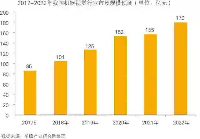未来几年,行业若按照年均16%左右的增长率,预计到2020年,我国机器视觉行业市场规模将突破150亿元,到2022年达到179亿元。