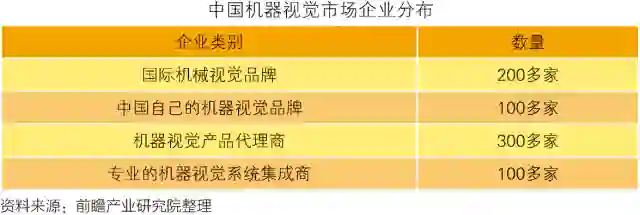 根据中国机器视觉产业联盟(CMVU)调查统计,现在已进入中国的国际机器视觉品牌已近200多家,中国自有的机器视觉品牌也已有100多家,机器视觉各类产品代理商超过了300家,专业的机器视觉系统集成商也有100多家。