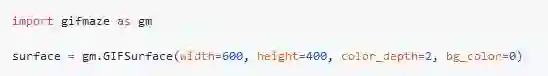 首先我们需要构建一个GIFSurface对象(类似cairo的ImageSurface类),我们的动画将会画在这个对象上。同时,我们需要指定图片的大小和可用的颜色数量。