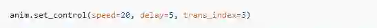 这些参数的意思是“每20步渲染一帧,帧之间间隙0.05s,调色板中第四个颜色作为通明度通道”。
