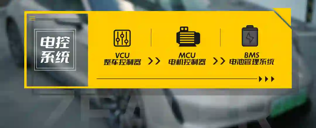 目前的电控系统主要包含 VCU 整车控制器、MCU 电机控制器、和 BMS 电池管理系统。VCU 通过采集你下达的指令来判断你的意图,将你的意图传达给 MCU,MCU 接受命令并通知 BMS 电池管理系统,把动力电池的直流电能转换为需要的高压交流电,随即驱动电机输出机械能。这看似复杂的信息传递实际上所耗费的时间就在一瞬间。