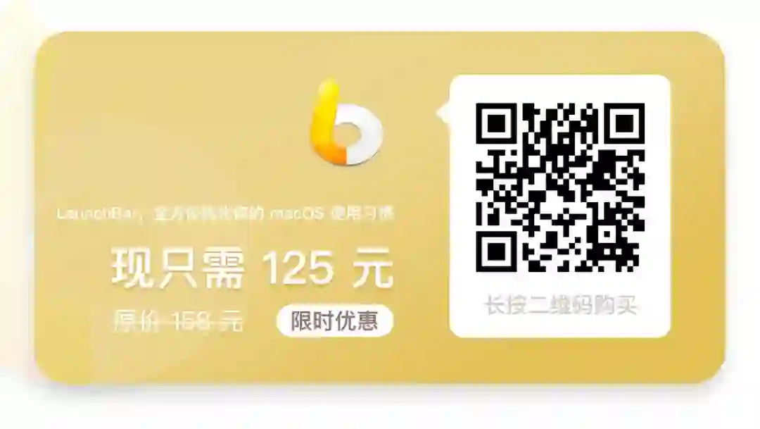 购买《LaunchBar,全方位优化你的 macOS 使用习惯》新手版,你不仅可以获得由资深 LaunchBar 用户带领你从浅入深地掌握 LaunchBar,获得简化繁琐操作的思路,学会自己制作常用工具的方法,更可以获得 LaunchBar 软件的正版授权。