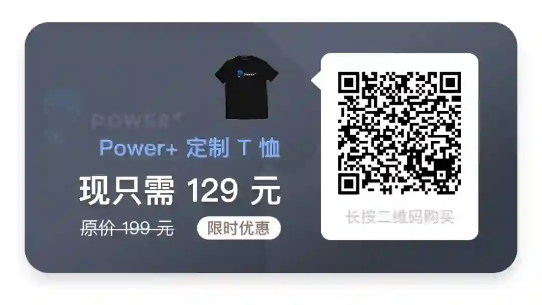 这款定制 T 恤基于 Power+ 栏目的理念来设计,采用美国高级 SUPIMA 棉面料,由知名 T 恤玩家 @带三个表 的独立品牌 不许联想 提供定制服务。