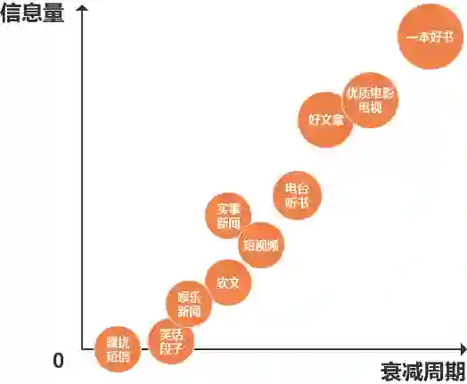 一个八卦新闻的衰减周期很短,很少有人几年后还记得。而小学的九九乘法口诀每个人都会记得,因为它非常有用,生活方方面面都被用到,它的衰减周期就非常长。