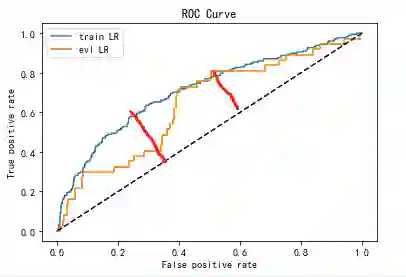 下图是KS的差距,两者差不多,曲面面积可以理解成是AUC的差距,差的就很多了