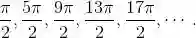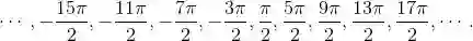 这个序列没有开端也没有结束. 当我说它是 “完全的” 时, 我用前后两头的省略号代表了无穷多个角. 为了避免这些省略号, 我们可以使用集合符号 {π/2 + 2πn}, 其中 n 可以取所有整数.