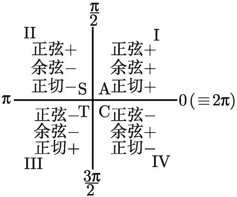 以下是用 ASTC 方法来求介于 0 到 2π 的角的三角函数值的总结.