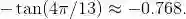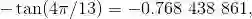 因为它不正确. 就应该写 -tan (4π/13), 除非有特别的要求, 让做近似. 在那种情况下, 使用约等号和更少的小数位数, 并恰当化整近似 (除非要求保留更多小数位数):