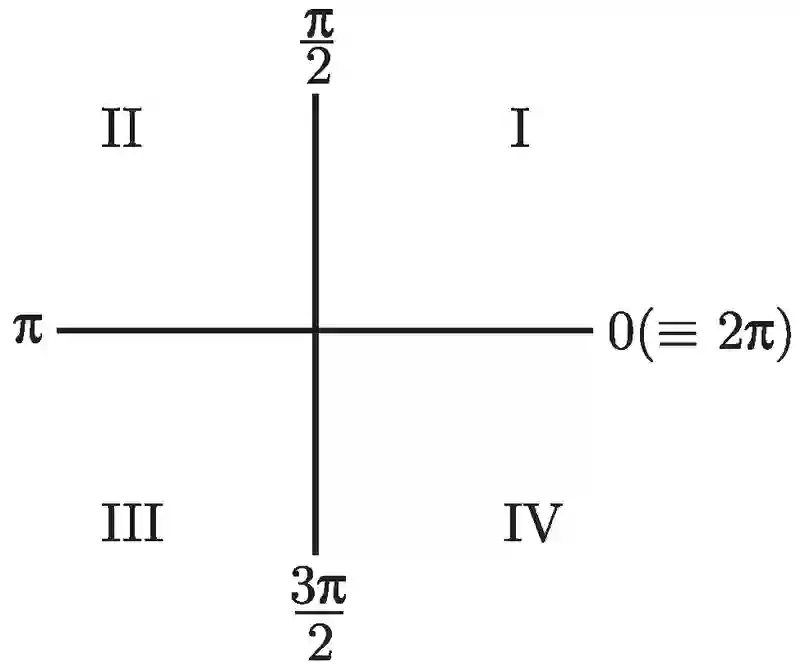 (2) 如果你想要的角在 x 轴或 y 轴上 (即没有在任何象限中), 那么就画出三角函数的图像, 从图像中读取数值 (2.3 节有一些例子).