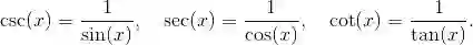 我们也会用到余割、正割和余切这些倒数函数, 它们的定义分别为