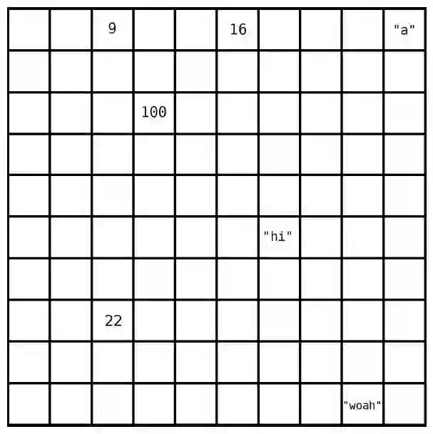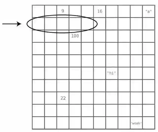 计算机的内存可以被看成一堆格子。下图是一片网格,其中有些格子有数据,有些则是空白。