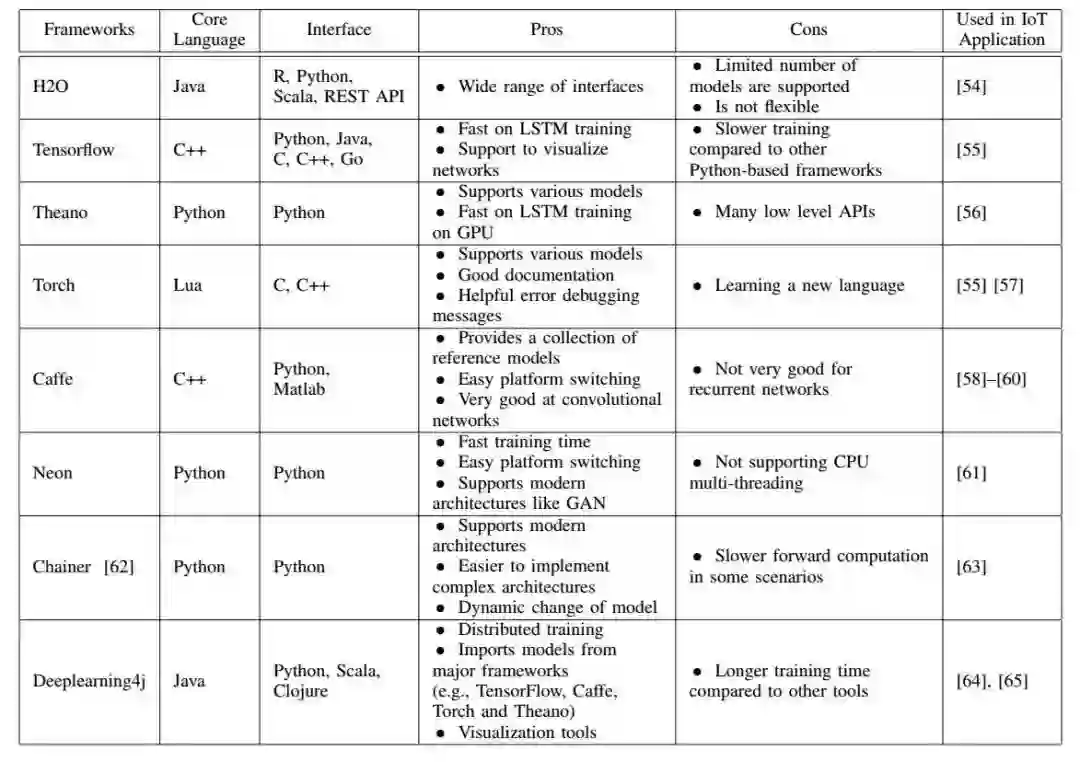 作者对于目前应用了深度学习方法的大量IoT应用进行了介绍,并且对不同类型的深度神经网络在各种IoT领域的应用进行了概括和对比。