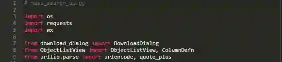 这里将导入一些新包。第一个是请求包,使用方便,基于Python实现文件下载和Internet相关操作,许多开发人员认为它比Python自带的urllib更好用。不过它需要安装才能使用,同时还需要安装ObjectListView。