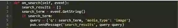 当用户按下“输入/返回”时将调用on_search()。如果用户在搜索框中输入搜索条件,则将构建查询,并通过pubsub发送。