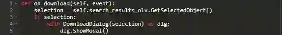 这里,通过调用GetSelectedObject()来获取用户的选择。如果用户未选择任何内容,则退出此方法。此外,如果用户选择了某个条目,则实例化DownloadDialog并将其展示给用户以允许他们下载某些内容。