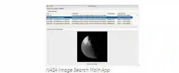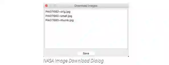 最后几行代码添加了标题文本控件和图像窗口部件,这些部件将在选择结果时更新。您还可以添加下载按钮,以允许用户选择要下载图像的大小。NASA通常会提供从缩略图到原始TIFF图之间的几种不同版本的图像。