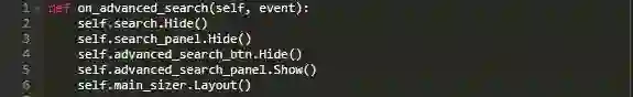 当触发on_advanced_search()时,会隐藏搜索部件,常规搜索面板以及高级搜索按钮。接下来,将显示高级搜索面板并在main_sizer上调用Layout(),因此面板将会进行切换并调整以适应框架大小。