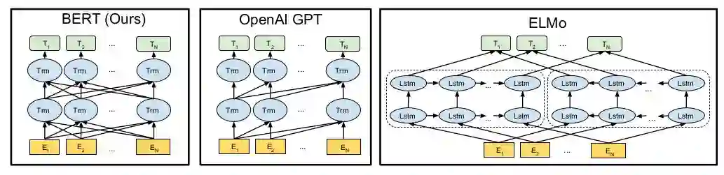 对 BERT 影响最大的要数早它半年问世的 ELMo 和 OpenAI GPT 了, 不止在正文中対标了这两者, 甚至在摘要中就指名道姓了. 颇有国内手机厂商互掐的风范.