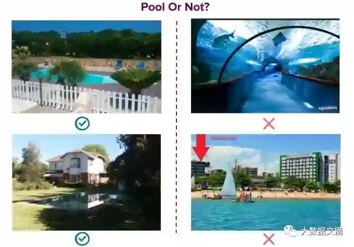 左边两张照片被正确地预测为泳池,右边水族馆和海滨的两张照片被正确地预测为“不是泳池”