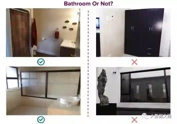 左边两张照片被正确地预测为浴室,右边两张照片被正确地预测为“不是浴室”