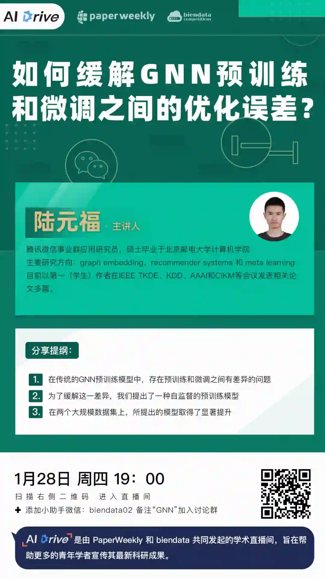本期 AI Drive,我们邀请到腾讯微信事业群应用研究员陆元福,为大家解读其发表于 AAAI 2021 的最新工作。对本期主题感兴趣的小伙伴,1 月 28 日(周四)晚 7 点,我们准时相约 PaperWeekly B 站直播间。