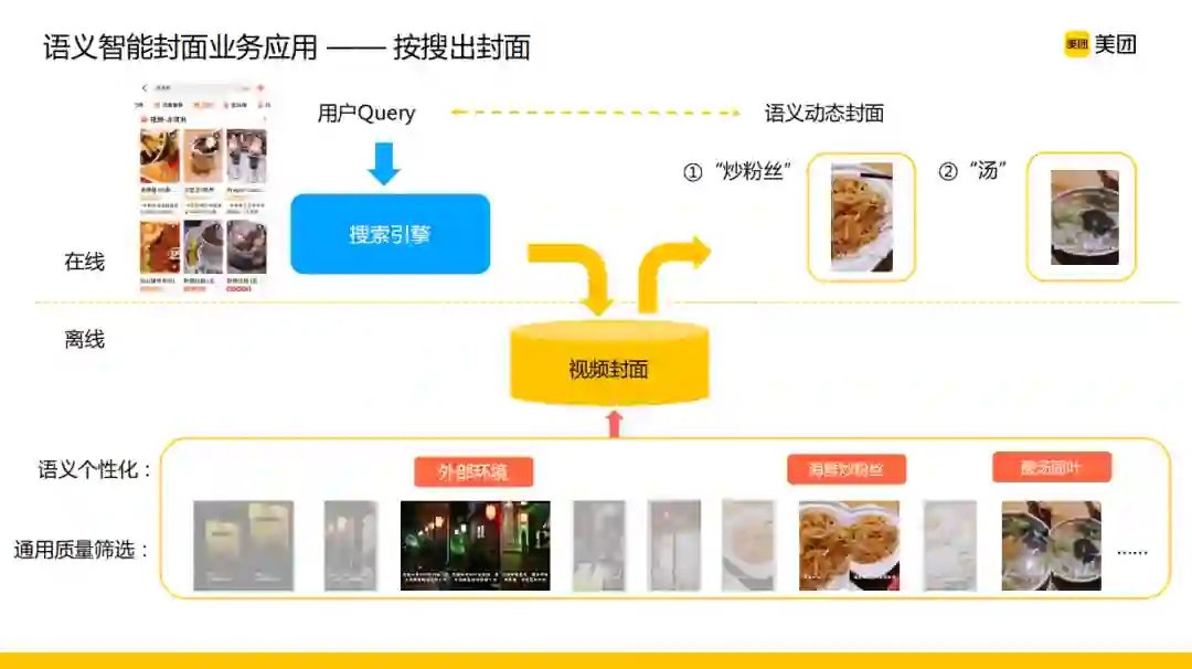 在实际生产环境中,我们通过这样的方式从用户评论的内容中挖掘出的标签与视频片段的相关性是非常高的,挖掘出的标签可以直接用到相关的线上应用,比如最典型的用户搜索场景下,搜索引擎能够根据用户的查询内容推出语义相关的封面呈现给用户,通过这种方式视频封面与用户搜索内容的相关性有了比较明显的提升。