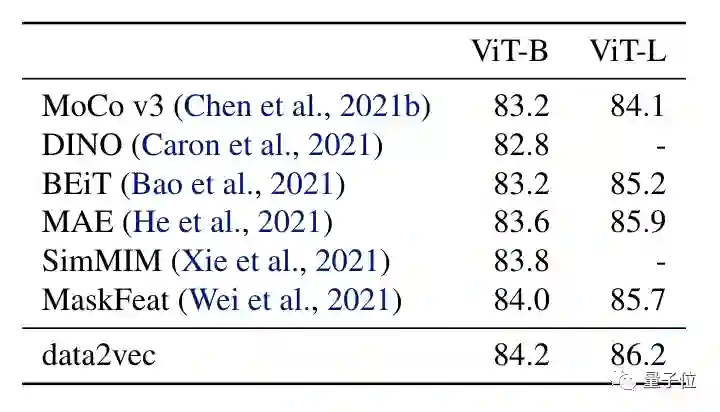 图像、语音、文本都可以处理,效果还都不错,在CV方面甚至超过了包括MAE、MaskFeat在内的一众模型。