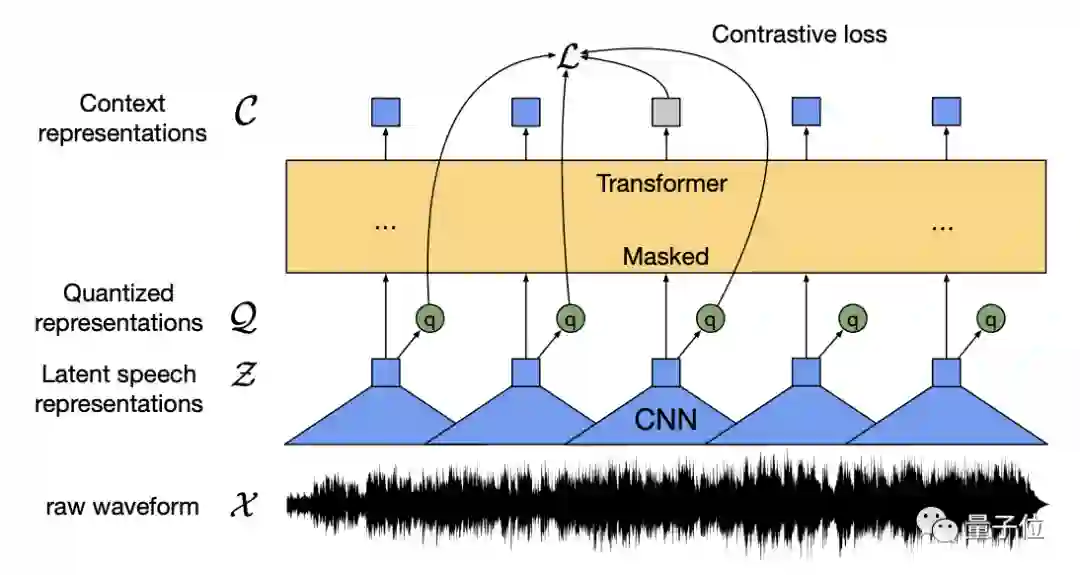 而语音的编码方式是用多层的一维卷积神经网络将16kHz的波形转换为50Hz的一串数据序列。