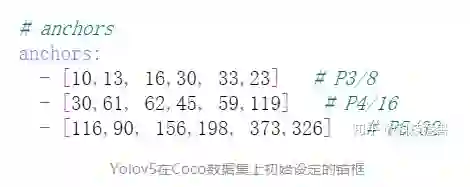 因此初始锚框也是比较重要的一部分,比如Yolov5在Coco数据集上初始设定的锚框: