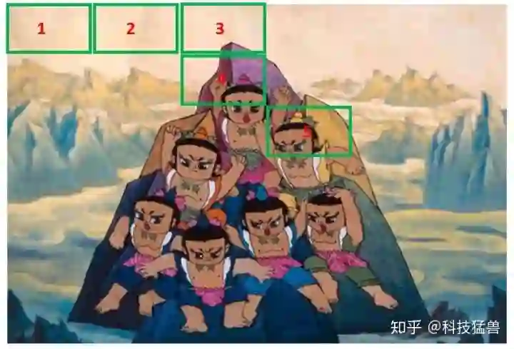 比如下面这张图片,我需要你检测葫芦娃的脸,如图1所示: