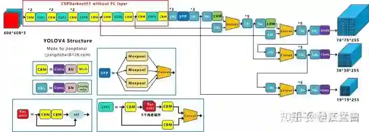 然后我们看下检测类网络的结构,如下图3所示,这个图是YOLO v4中总结的: