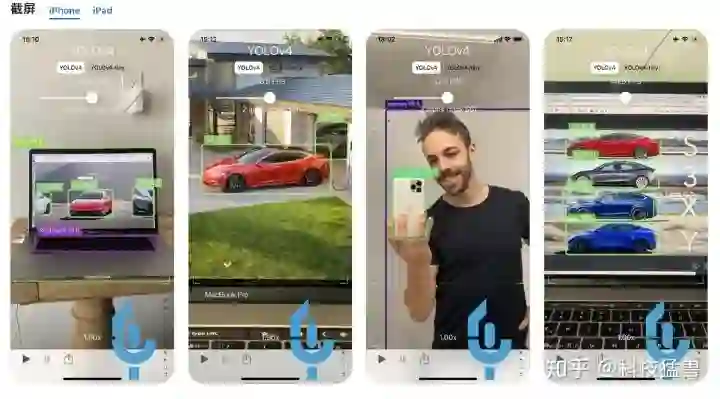 YOLO v5其实一开始是以一款app进入人们的视野的,就是上图的这个,叫:i detection(图上标的是YOLO v4,但其实算法是YOLO v5),使用iOS系列的小伙伴呢,就可以立刻点赞后关掉我这篇文章,去下载这个app玩一玩。在任何场景下(工业场景,生活场景等等)都可以试试这个app和这个算法,这个app中间还有一个button,来调节app使用的模型的大小,更大的模型实时性差但精度高,更小的模型实时性好但精度差。