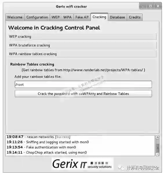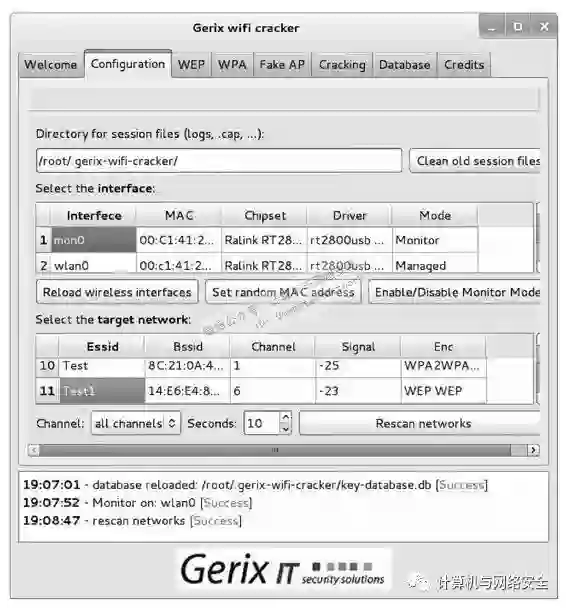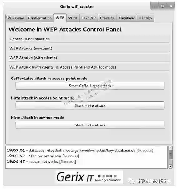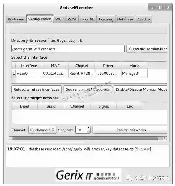 下面介绍使用Gerix工具自动地攻击无线网络。使用Gerix攻击WEP加密的无线网络的具体操作步骤如下所述。