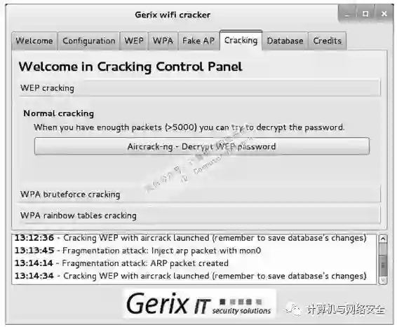 3、使用Gerix WiFi Cracker工具破解WEP加密