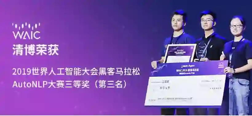 再往前,8月29日,在2019世界人工智能大会黑客马拉松(WAIC)AutoNLP大赛上,清博NLP小组以初赛第11名的成绩入围决赛,历经48个小时,在与阿里团队、南京大学团队、两支欧洲队伍、一支韩国队伍、一支日本队伍同场竞技中获胜,并最终取得大赛第三名的好成绩;获得第一的是Deepblue团队,联想研究院团队取得第二名。