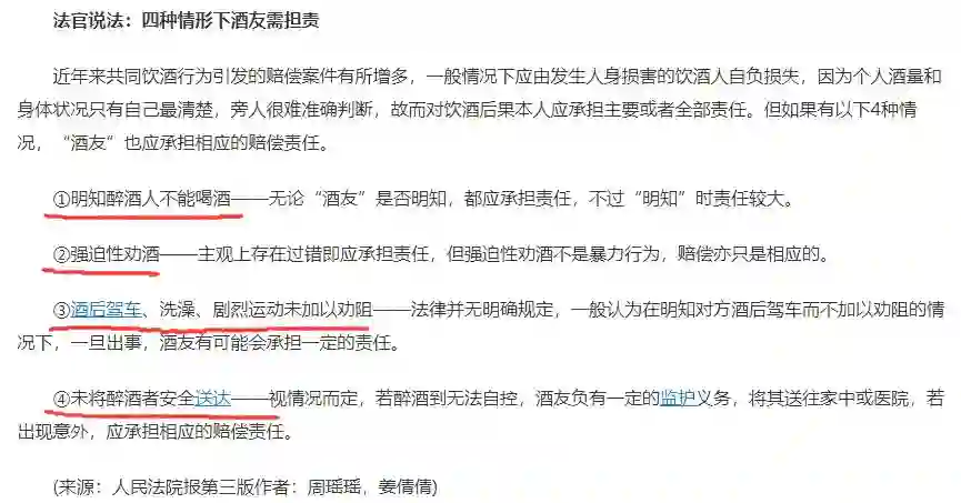 近年来,因喝酒而出事故的新闻时有发生,不少一同吃饭的朋友也因此有连带责任。人民法院报就曾发文称,以下四种情况酒友需要担责: