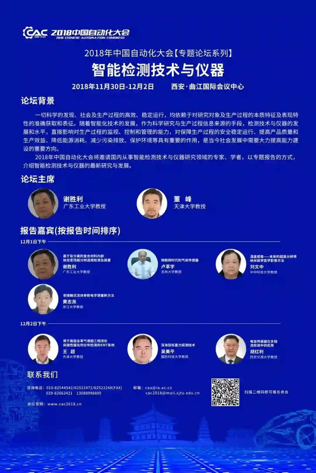 今天为大家介绍的是CAC 2018专题论坛:智能检测技术与仪器的背景,及相应的两位论坛主席与七位报告专家。