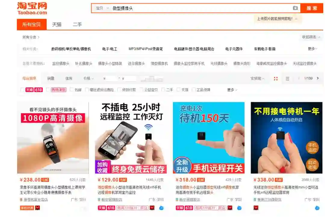答案是:偷拍很容易,而且成本很低。为了验证,我们特地去各大电商搜索了微型摄像头,就可以找到大量的功能丰富的摄像头,需要说明的是,这些摄像头并不是为了偷拍而制造的他们,多数是为了安防和公共区域监控,所以当我们买的时候没有任何的压力就可以轻松买到。